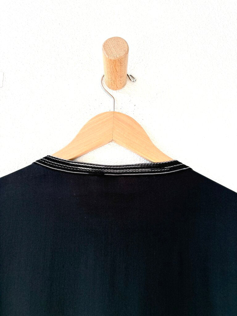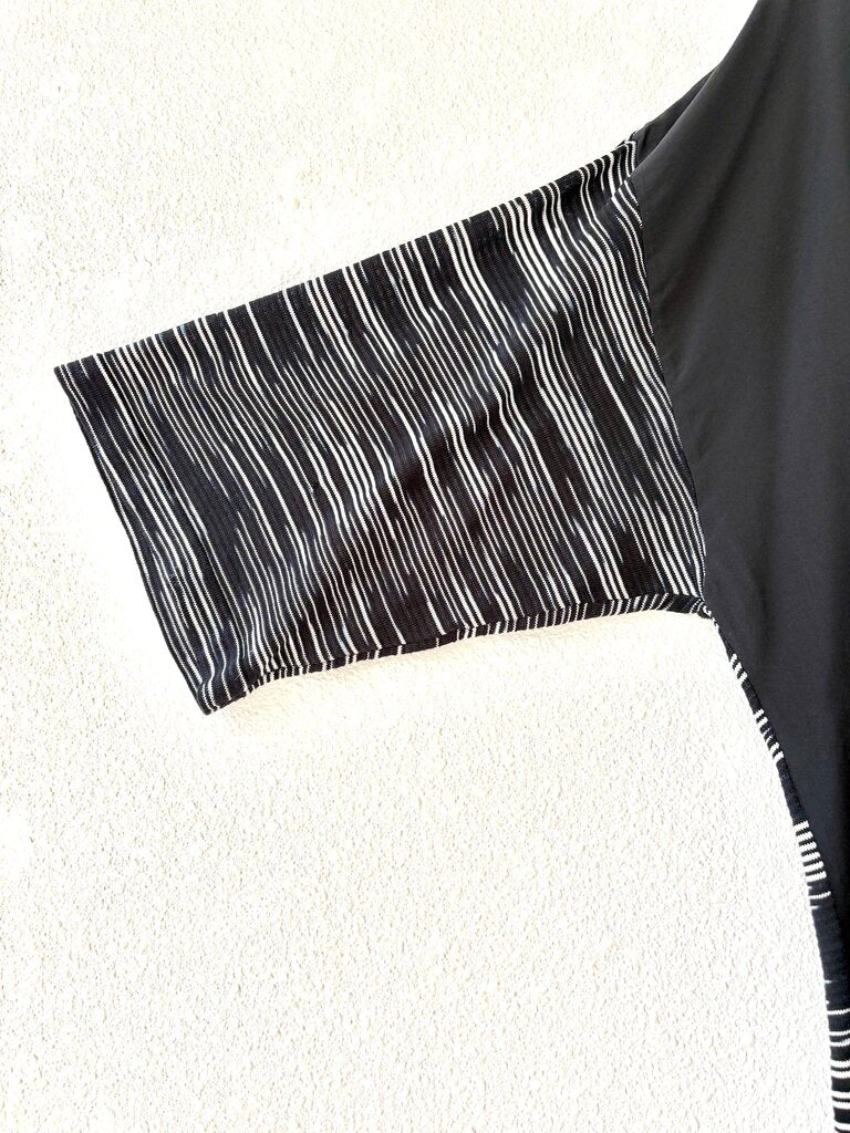 Missoni t shirt style tunic in a black and white stripe cotton blend at front and black at silk back. Size large.
